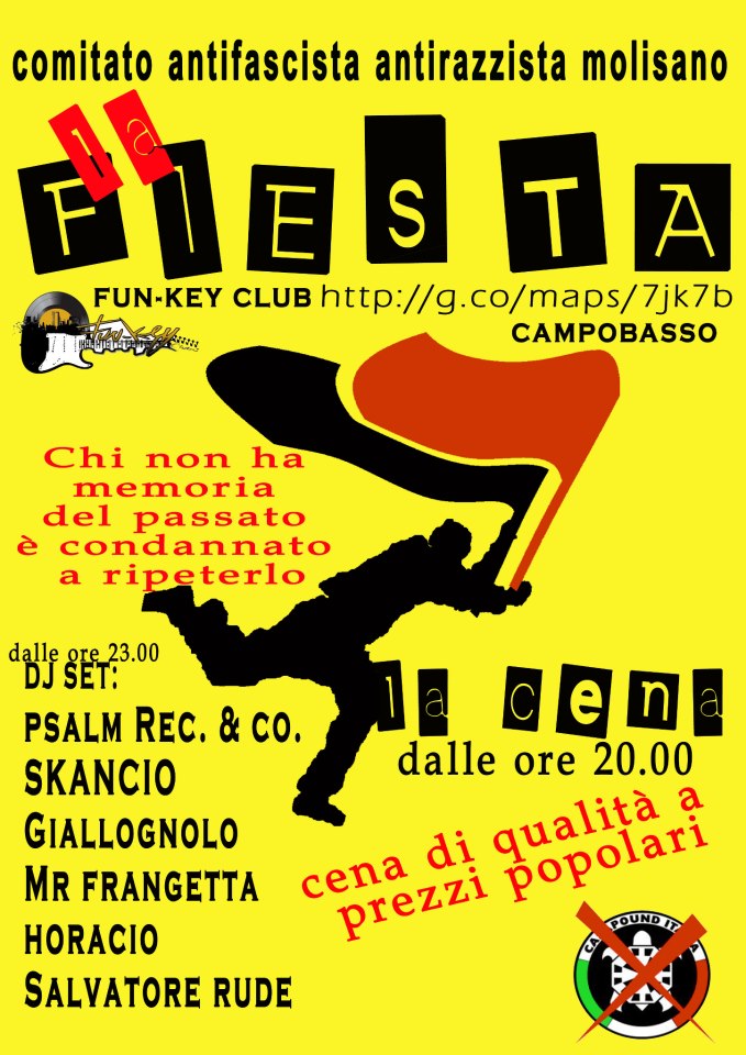 Abbiamo un altro problema grosso, in Molise non ci sono spazi liberi per fare politica. Riunirsi, discutere, approfondire, vedere film, documentari oppure allestire una mostra sono attività diventate praticamente impossibili, a meno che non si sia in grado di cacciare una bella quantità di danaro per affittare spazi privati o spazi pubblici dati in gestione ai privati. La cosa non si nota, poiché sembra che gli unici che si debbano riunire per discutere siano gli incravattati di partito, i quali hanno già le loro sedi (pagate dai noi) ma il problema per tutt* coloro che vogliono fare politica al di fuori dei partiti esiste e potete immaginare che non sia di poco conto. Se già è difficile fare attività politica in Molise, per i soggetti non partitici di movimento a causa delle condizioni socio-culturali, figuriamoci quando non si ha nemmeno un luogo dove potersi riunire per portare avanti l’attività politica quotidiana.